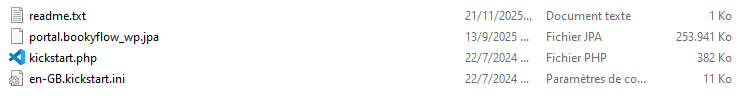 .jpa file (for example bookyflow-portal-quickstart.jpa)kickstart.phpCopy the .jpa file and kickstart.php to your web server.